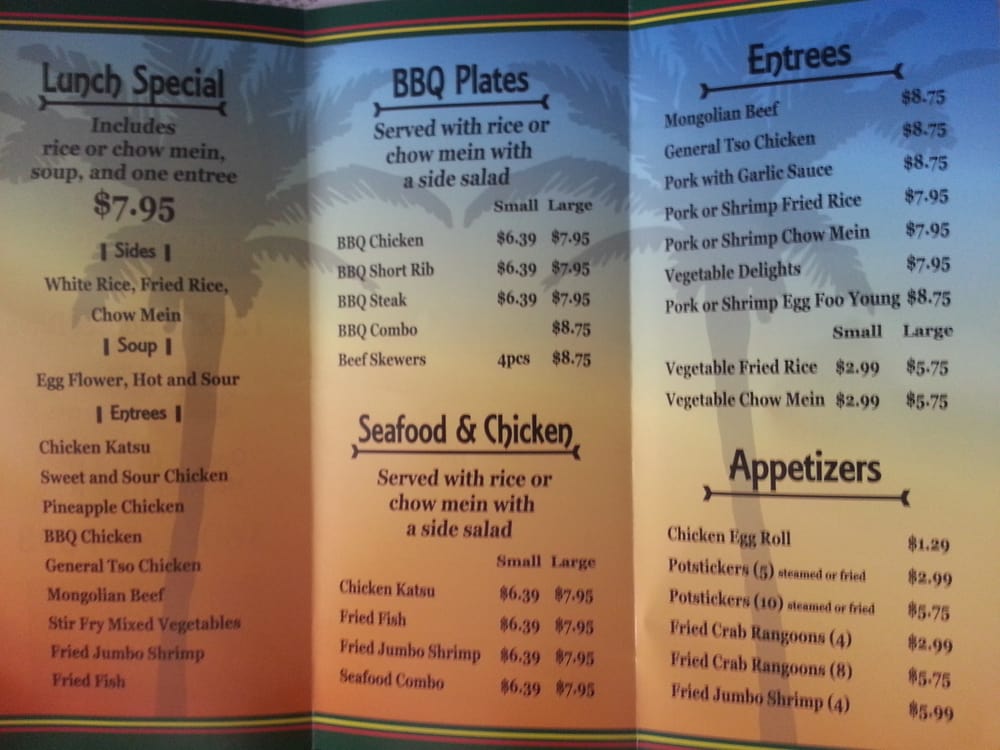 Appetizers like the crispy Egg Rolls and delectable Crab Rangoon kick off the dining experience, setting the stage for more tantalizing options. The heart of the menu lies in its Noodle Soups, featuring flavorful creations like BBQ Chicken Noodle Soup and Wonton Noodle Soup, each steaming bowl promising satisfaction. The BBQ Plates are not to be missed; the BBQ Short Ribs and Combo Plate showcase the house's mastery of grilling, leaving taste buds dancing with joy.